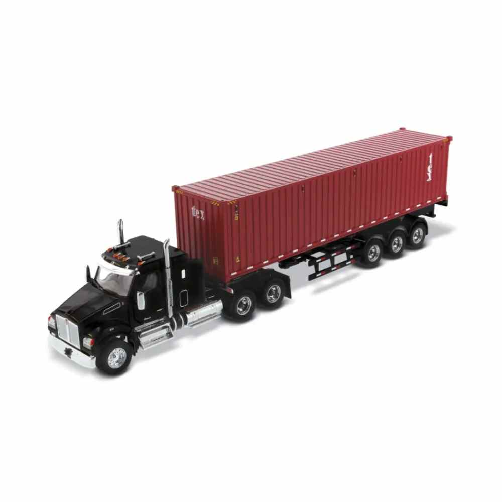 - Camión tractor con cabina en tándem Kenworth T880 SFFA con remolque de esqueleto y contenedor marítimo de mercancías secas TEX Shipping - Vehículo modelo Masters Diecast 71060