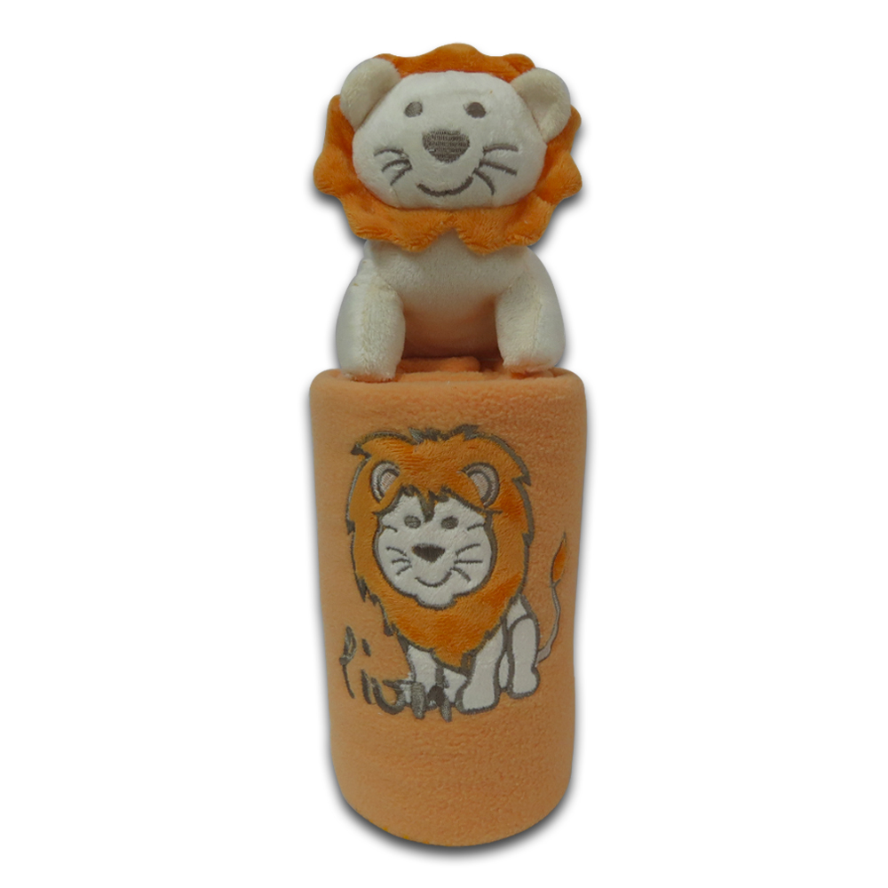 Peluche LEÓN con frazada de algodón.