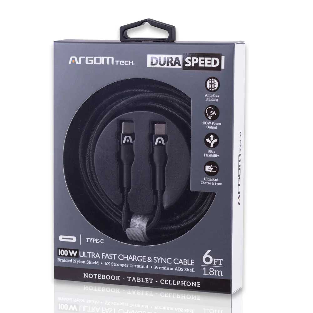 CABLE ARGOM ARG-CB-0048BK DURA SPEED 65W FAST CHRG TYPE-C TO TYPE-C 1.8M/6FT BLACK