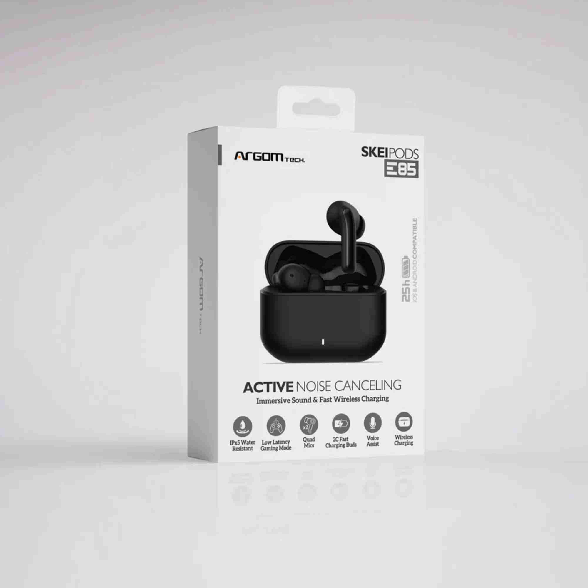 AURICULAR ARGOM ARG-HS-5085BK E85 TRUE WIRELESS EARBUDS SKEIPOD ANC IPX5 WIRELESS CHRG BLACK
