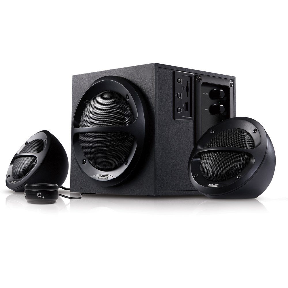 Capaz de entregar 39 watts de potencia en régimen continuo, este sistema de 2.1 canales consta de dos satélites para la gama completa de tonos y de un potente altavoz de ultragraves (subwoofer), el cual dispone a su vez de un control de volumen maestro y otro de bajos convenientemente ubicados en la unidad principal. La caja de madera acústicamente equilibrada para una respuesta profunda de graves le confiere a este Sistema Estéreo de 3 Parlantes la potencia necesaria para rebasar cualquier ambiente con un sonido nítido, envolvente y sin distorsión - ¡proveniente de cualquier dispositivo reproductor!