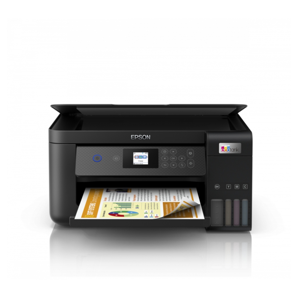 La multifuncional inalámbrica EcoTank L4260 te ofrece la revolucionaria impresión sin cartuchos, con nuevo diseño de tanques frontales, botellas de tinta con llenado automático y codi_cadas para llenado fácil de cada color. Además, la EcoTank L4160 te permite imprimir hasta 7.500 páginas en negro1 o 6.000 páginas a color. Imprime cientos de proyectos sin interrupciones, con los juegos de botellas de tinta original Epson que equivalen a unos 35 juegos de cartuchos de tinta, ahorrando hasta 90 % en tinta con las botellas de reemplazo de bajo costo. La EcoTank L4260 también permite imprimir en forma inalámbrica desde tabletas y teléfonos inteligentes y tiene Wi-Fi Direct™ e impresión automática a doble cara.