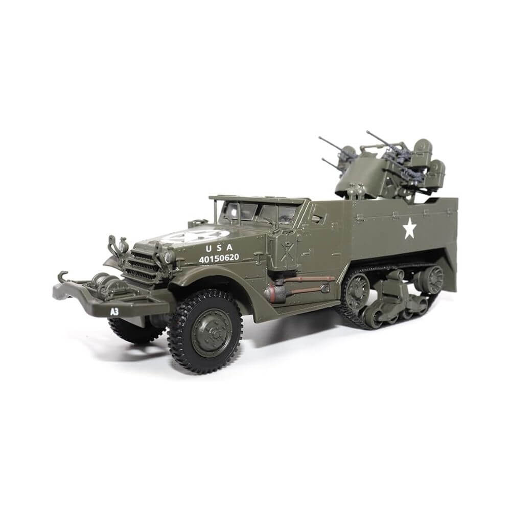 - Auténtico carro de motor de pistola múltiple M16 a escala 1:43 de Militaria Diecast, un homenaje a la Segunda Guerra Mundial.