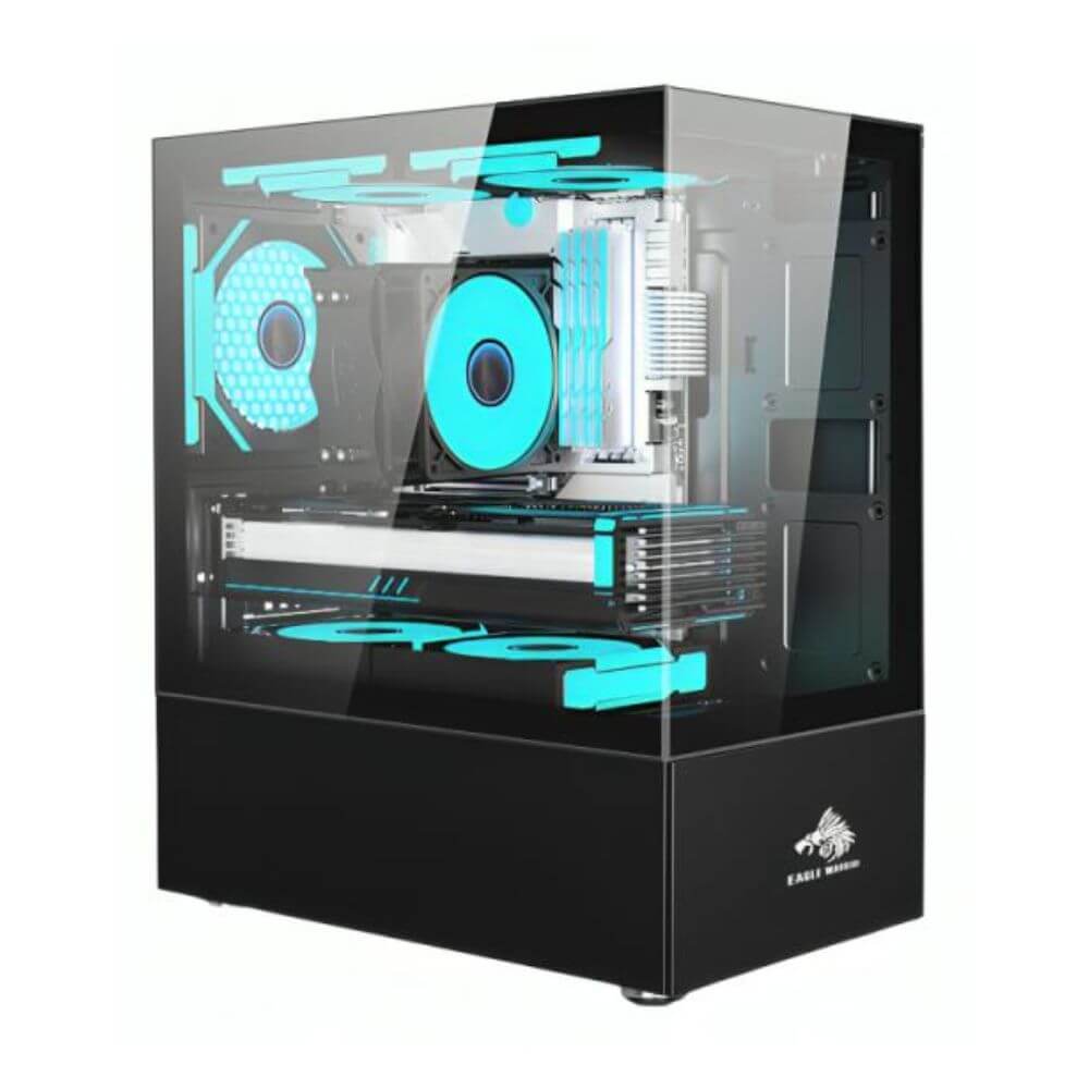 - Diseño: Estilo gamer compacto, color negro, logo Eagle Warrior en el panel frontal.