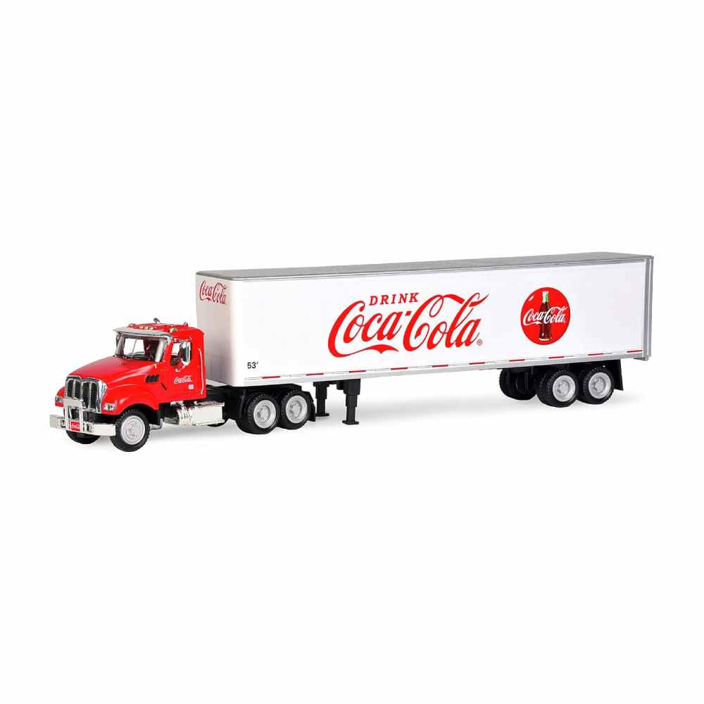 - Los gráficos auténticos de Coca-Cola cuentan con el logotipo de la escritura y el logotipo de la botella en el remolque de entrega.