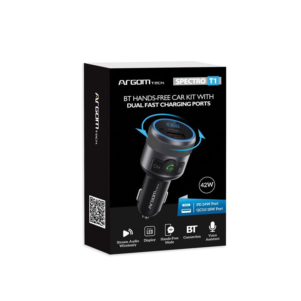 KIT MANOS LIBRES ARGOM ARG-AC-0343BK BT HANDS FREE CAR SPECTRO T1 WITH QUICK CHARGER