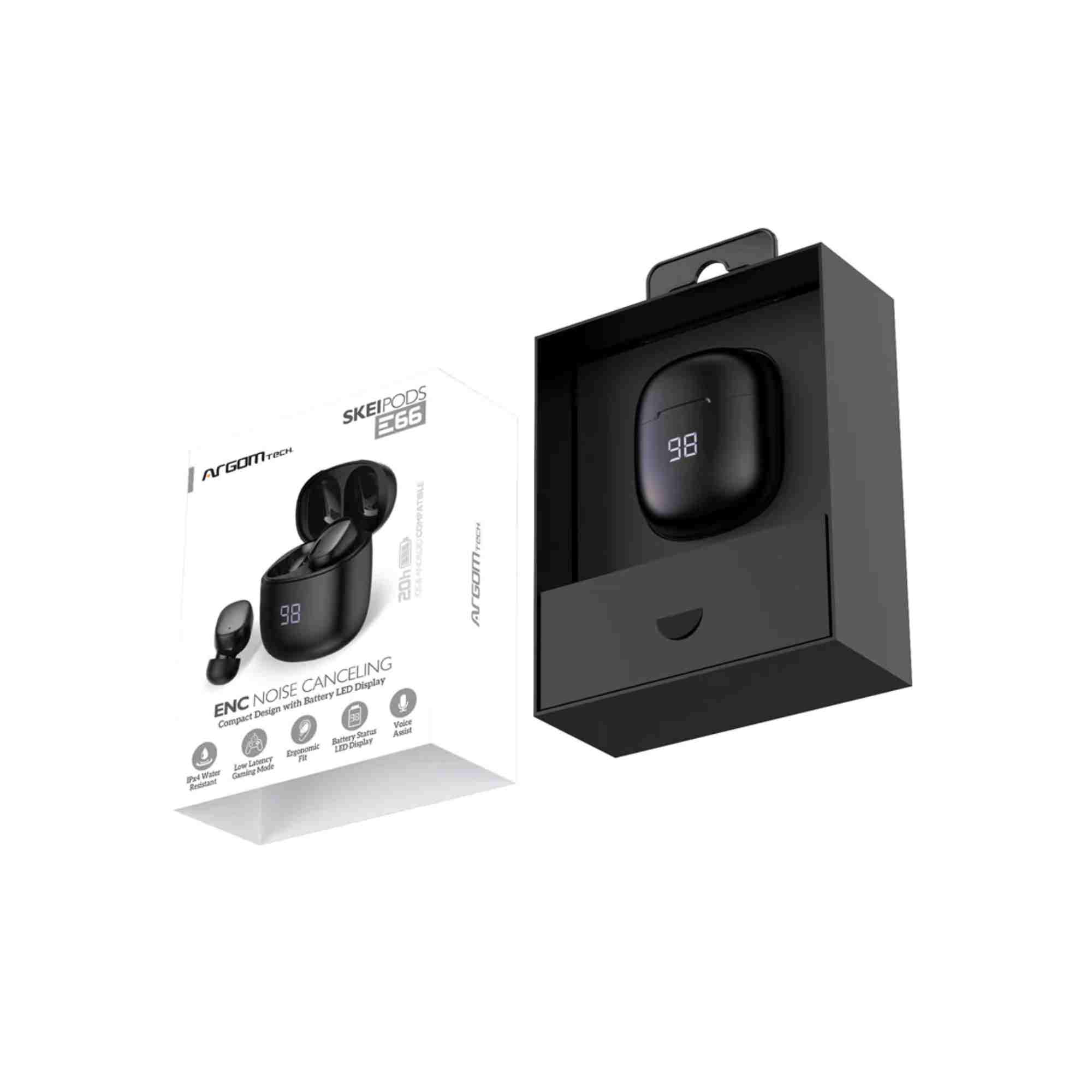 AURICULAR ARGOM ARG-HS-5066BK E66 TRUE WIRELESS EARBUDS SKEIPOD ENC LED SCREEN BLACK