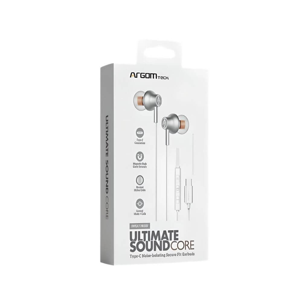 - Modelo ARG-HS-2030WT: Audífonos cableados con conexión tipo C y diseño premium.