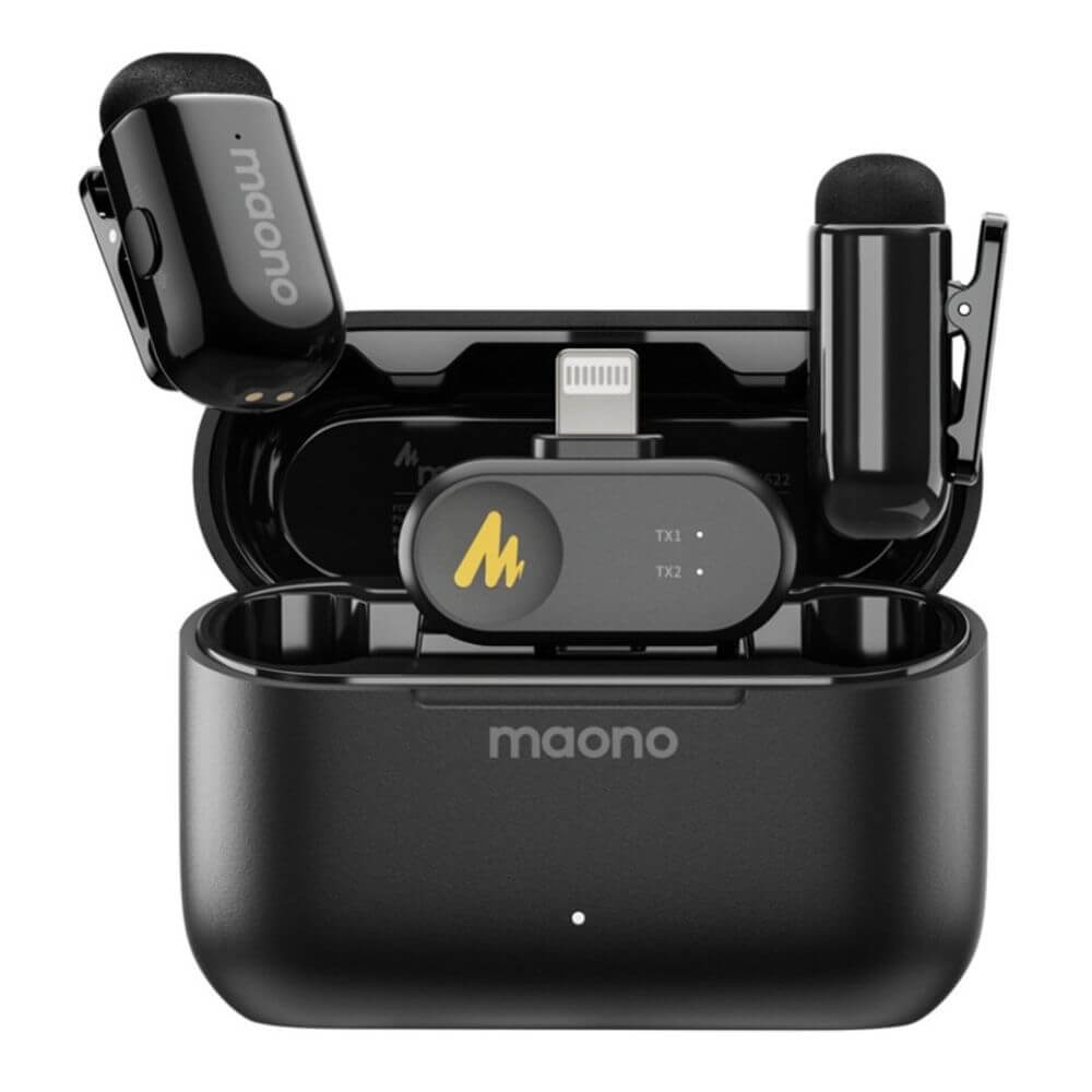 MICROFONO MAONO WM622 PB2 WIRELESS RECEPTOR LIGHTNING C/REDUCTOR DE SONIDO BLACK