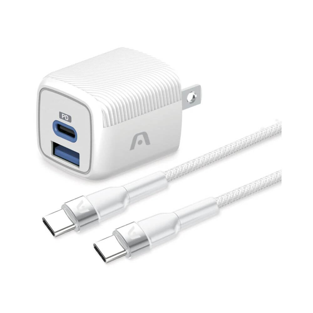 CARGADOR ARGOM ARG-AC-0155WT CHARGE PACK DUAL FAST WALL 38W & FAST CHARGE CABLE TYPE-C TO TYPE-C 1.8