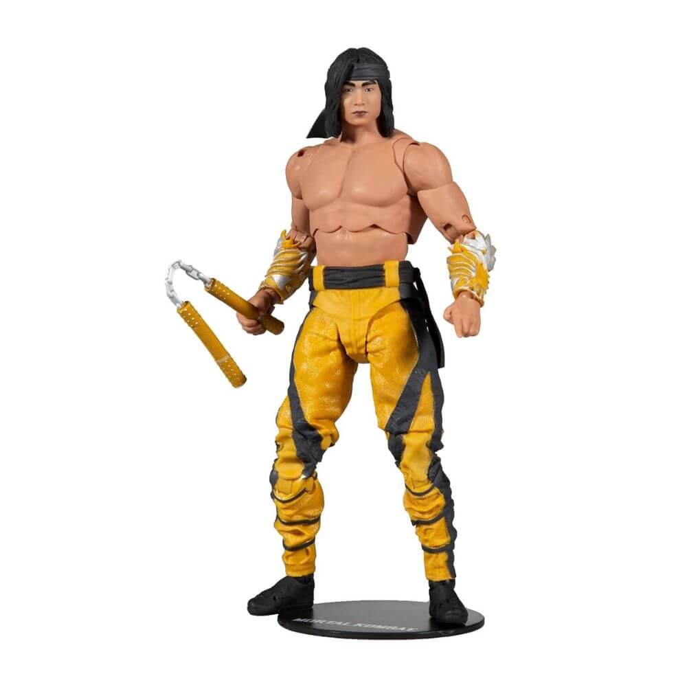 Figura de escala de 7 pulgadas increíblemente detallada basada en la franquicia Mortal Kombat, Diseñado con ultra articulación con hasta 22 partes móviles para una gama completa de poses, Liu Kang aparece en su Fighting Abbot Skin como se ve en el videojuego Mortal Kombat 11, Incluye nunchaku, un juego alternativo de manos y una base, Presentado en caja con ventana temática de Mortal Kombat, Colecciona todas las figuras de acción McFarlane Toys Mortal Kombat de 7 pulgadas y paquetes múltiples