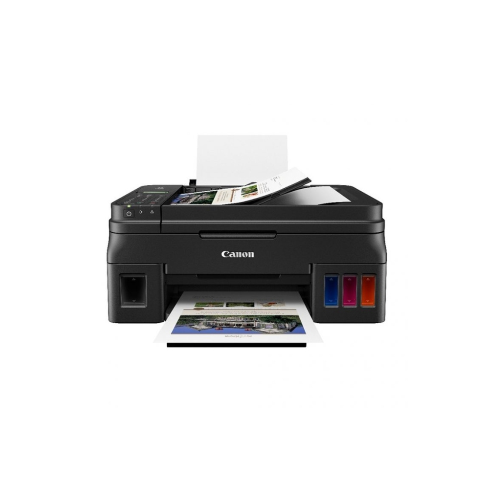 La impresora inalámbrica multifuncional PIXMA G4110 proporciona la capacidad de imprimir, copiar, escanear y enviar fax. Así mismo, tiene un alimentador automático de documentos de 20 hojas y una pantalla LCD de 2 líneas. Esta impresora también proporciona muchas de las funciones populares que se encuentran en los modelos anteriores tal como el sistema de tinta híbrido integrado, diseño compacto y capacidades de impresión sin bordes.
