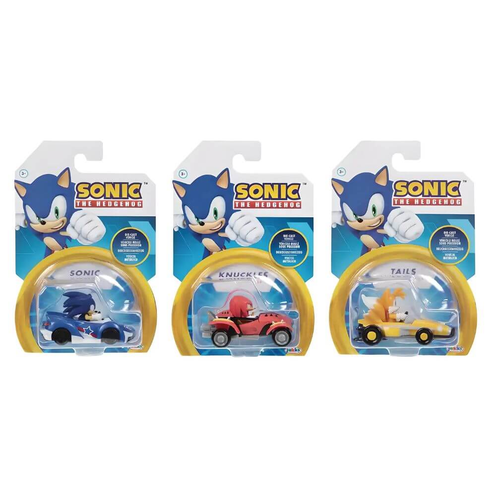 Experimente la emoción de los videojuegos de Sonic the Hedgehog con esta colección de vehículos fundidos a presión a escala 1:64.